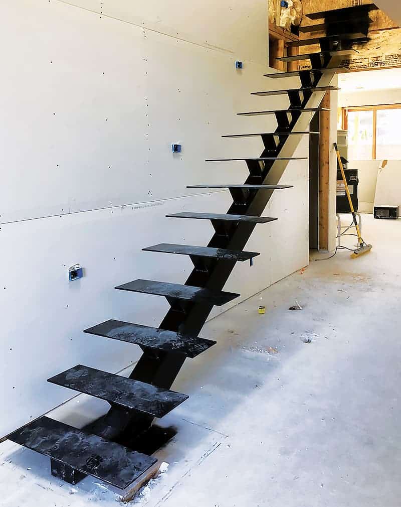 Лестница на одиночном или моно косоуре. Точнее ее каркас. Такие лестницы из-за универсальности, надежности и низкой стоимости чрезвычайно популярны во всем мире. Покраска порошковая. Мы даем реальную стоимость на каркасы. Вы можете быть уверены, что после замера стоимость не поменяется.