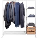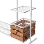 Полки из металлической сетки имеют глубину 46см. Легко моются. Верхняя полка имеет глубину 35см. Окрас порошковый. Вы можете выбрать любой цвет для данной вешалки. По умолчанию делается в черном и белом цветах. Вешалка может быть укомплектована поворотными колесиками.