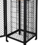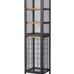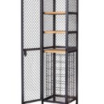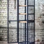 Узкий винный шкаф в стиле лофт «Сетка Вин Мини» сделан из металлического уголка, сетки и катанки стальной O8 и O6мм. Рассчитан на 18 винных бутылок. Запорный рычаг двери может заткрываться на висячий замок. Замок в комплект поставки не входит.