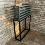Стильное кашпо в духе лофт — свежий акцент для дома или сада. Прочная конструкция из металла и сосны с выразительными промежутками между планками.