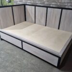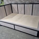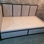 Кровать в стиле лофт из массива дуба — строгий дизайн и надёжность на долгие годы. Пространство под кроватью с выдвижными ящиками решит вопрос хранения.