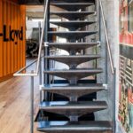 Лестница «Двутавр» сделана в индустриальном лофт стиле. Минималистский дизайн. Монокосоур из двутавра 120мм. Ступени из металлического согнутого листа 8мм. Применено чернение металла.