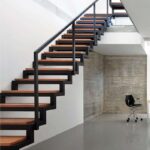 Лестница в стиле лофт-минимализм. Надежные перила из металлического профиля. Экологичные сосновые ступени.