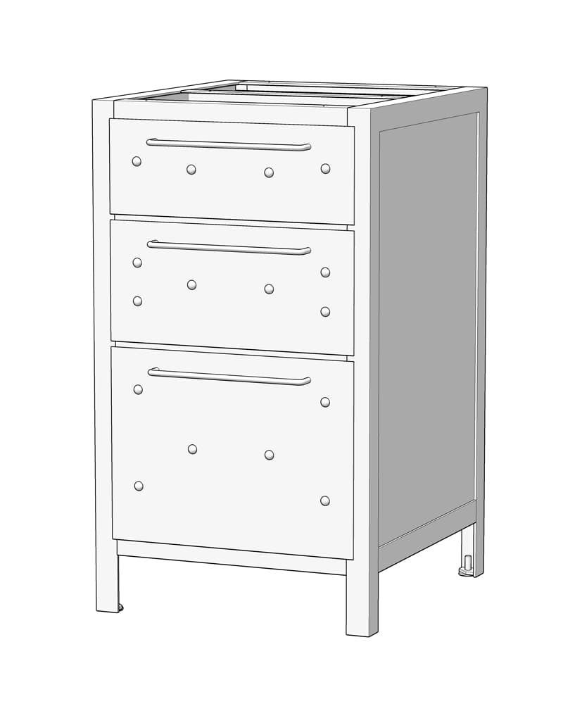 Шкаф полностью сварной. Доставляется покупателю в собранном виде. Стандартно имеет два цвета: белый и черный. Но вы можете выбрать любой цвет. Цена не включает верхнюю столешницу. Она покупается и устанавливается отдельно.