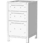Ширина шкафа 50см. Внутреннее наполнение: 3 выдвижных ящика из клееной сосны. Все ящики оборудованы плавным доводчиком. Высота верхнего ящика 15см, среднего 20 см, нижнего 34см. Глубина ящиков 53см. Дерево обработано маслом и воском.
