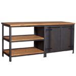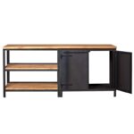 Металлическое основание имеет высоту 87см и может быть выровнено или поднято на высоту 92см благодаря регулируемой ножке. В полочной секции шкафа 2 полки из клееной сосны толщиной 30мм. Обработаны маслом и воском.