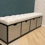Обувница-банкетка в стиле лофт О-001 — стильное и практичное решение для прихожей. Пространство для обуви + удобное сиденье с каретной стяжкой — элегантный порядок в деталях.