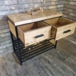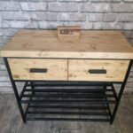 Обувница-консоль в стиле лофт О-028 — стильное и практичное решение для прихожей. Надёжная конструкция из массива сосны и металла с удобными ящиками и полками.