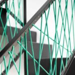 Перила сварные из металлического уголка 40х40мм. Внутреннее наполнение: трос синтетический в цветной обмотке. Трос создает хаотичный яркий рисунок. Может быть любых расцветок.