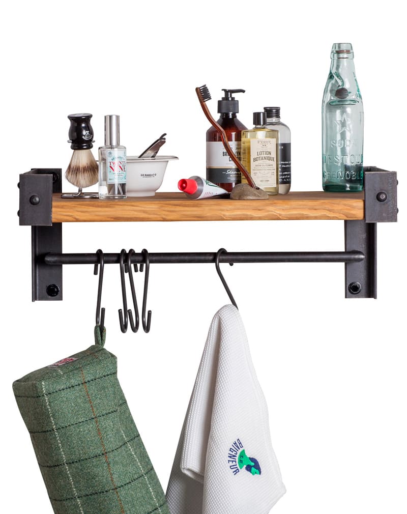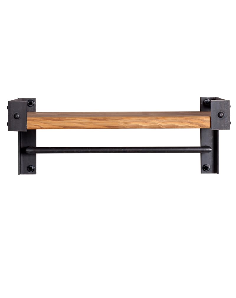 Полка сделана из клееной сосны и обработана маслом и воском. Глубина полки 25см. Ширина 60см. Толщина 28мм. Прочный и стильный кронштейн из заклепанной уголковой стали. В комплект входят: пять стальных крючков для подвеса на рейлинг, саморезы с шестигранной головкой, дюбеля для крепления к стене.