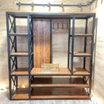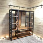 Прихожая в стиле лофт П-056 — стильное и функциональное решение для вашего интерьера. Прочная конструкция из массива сосны цвета миндаль и удобные полки сделают хранение вещей комфортным.