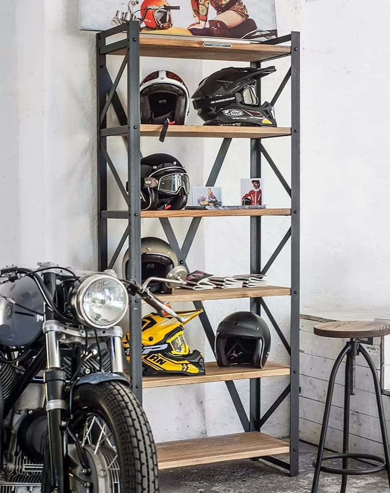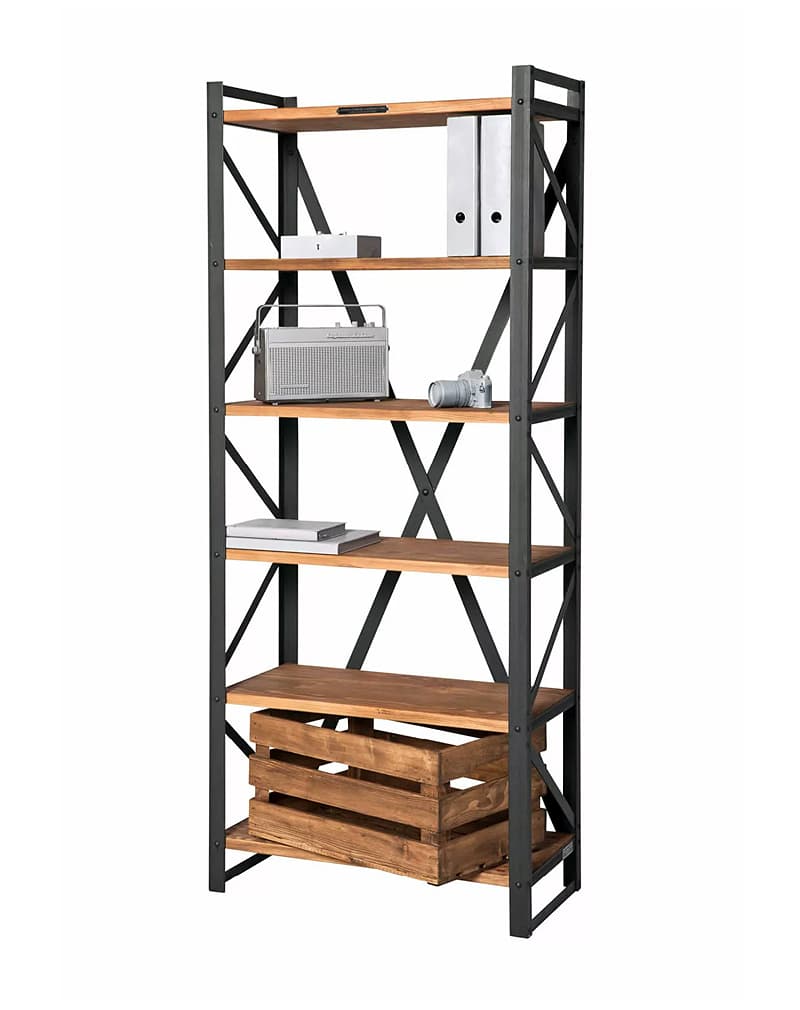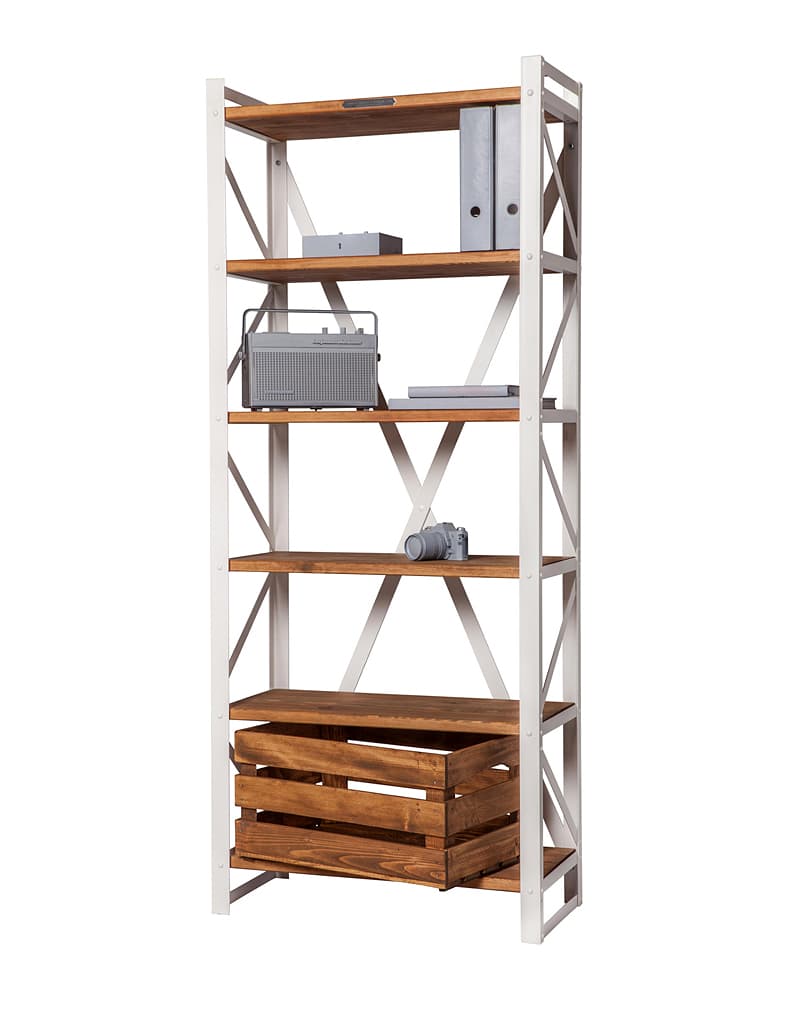 Стеллаж «Классик 80» сделан из металлического уголка и полосы, проклепанных стильными мебельными болтами. Полки из мебельного соснового щита, покрытого маслом и воском. В отличии от многих мебельных фабрик, компания «La loft» предпочитает использовать натуральное дерево, а не ДСП или МДФ.