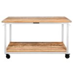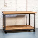Сервировочный стол «Сервеен» сделан из металлического уголка 32мм, колес поворотных 50мм и полок из древесины хвойных пород. Полки покрыты маслом и воском. В отличии от многих мебельных фабрик, компания «La loft» предпочитает использовать натуральное дерево, а не ДСП или МДФ.