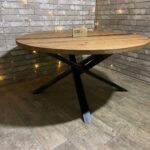 Стол обеденный в стиле лофт из массива дуба — роскошь натурального дерева и современный дизайн для вашего пространства. Прочная столешница диаметром 1500 мм вместит всю семью и гостей.