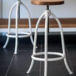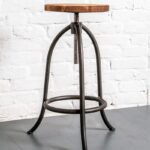 Барный стул среднего размера ручной работы с сиденьем из лиственницы. Прочный, со ??стальной рамой из гнутой трубы. Особенно подходит для сидения за кухонными модулями, островами, барными стойками — всем, что имеет высоту около 90–100 см.