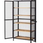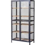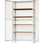Шкаф-сервант в стиле лофт «Сетка Серв» сделан из металлического уголка 32мм, проволочной сетки и трубы и полосы 30х4мм. Укомплектован пятью полками толщиной 28мм из сосны клееной, обработанной морилкой, маслом и воском .