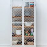 Полки сделаны на полную глубину шкафа 40 см. Шкаф-сервант укомплектован регулируемыми ножками, позволяющими увеличить его высоту на 5см. Рычаг двери может запираться на навесной замок. По умолчанию делается в черном и белом цветах.